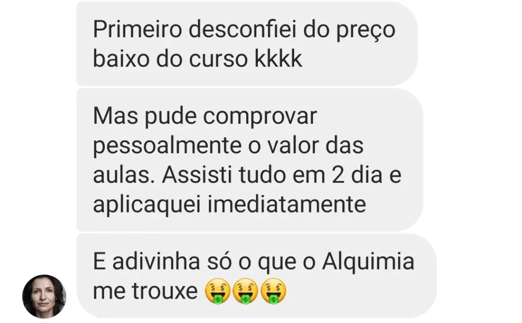 Essa tecnologia do futuro é o que eu ensino no ALQUIMIA, o único treinamento que te capacita a criar posts encantadores com o pó mágico da inteligência artificial.